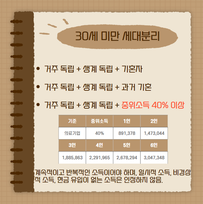 이미 세대분리가 되어 있더라도 조건을 충족하지 않는 30세 미만 세대주라면 추후 불이익을 받을 수 있습니다.